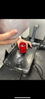 - Ponemos cera roja en la banda cervical que no hemos pintado con el pintauñas