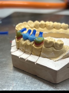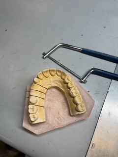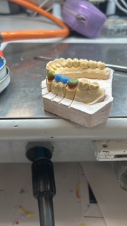 - Realizamos el ribete con cera azul en el canino y en el primer molar, colocamos el jito en el primer molar.